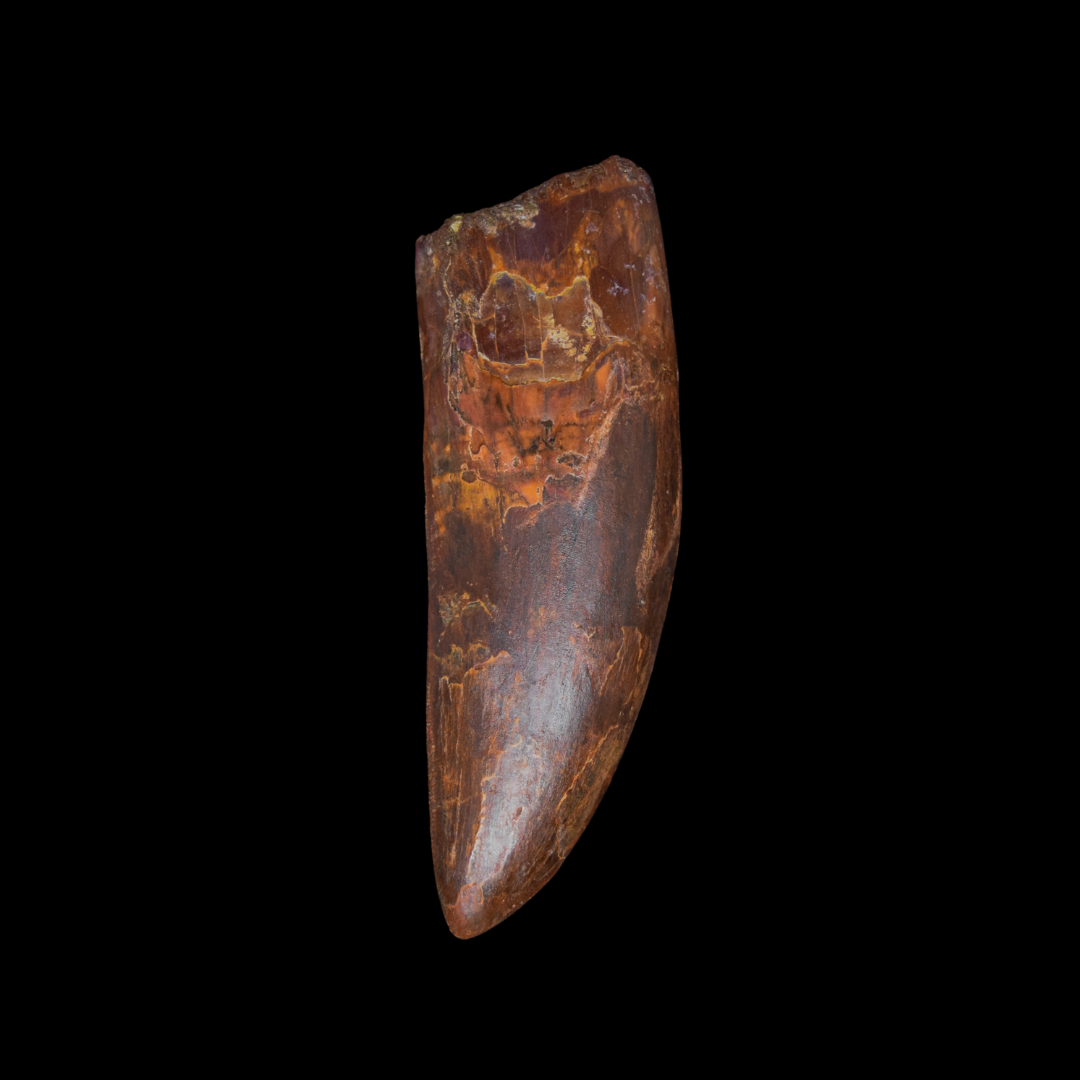 Descripción: Uno de los depredadores más grandes conocidos. Alcanzaba hasta 13 metros de largo y pesaba alrededor de 7 toneladas. Poseía un cráneo masivo con dientes aserrados similares a los de un tiburón, ideales para desgarrar carne. Habitó el norte de África hace aproximadamente 100 millones de años.